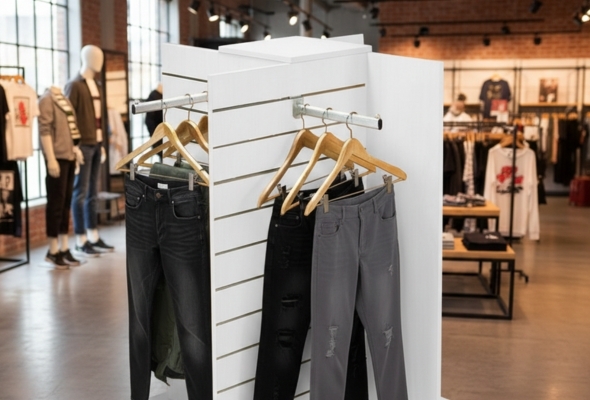 Slatwall gondolas are freestanding display units that let you merchandise products from multiple angles, making them a versatile choice for retail and commercial spaces. Featuring standard slatwall grooves that work with shelves, hooks, arms and other accessories, these gondolas give you the freedom to create engaging, flexible displays that adapt as your product range changes. Perfect for shops, showrooms, trade counters, exhibitions and commercial environments, they help maximise floor space and boost product visibility while maintaining a professional look.