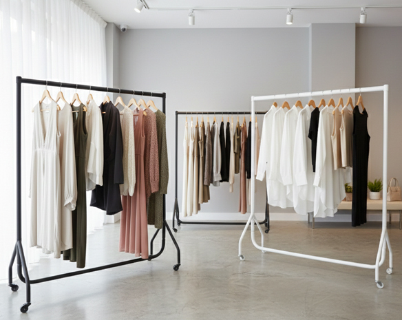 Elevate your display with Clothes Rails designed to match your brand’s unique look. Whether you need Mobile Rails for quick floor changes or Wall-Fix Hanging Rails systems to reclaim your wall space, we’ve got you covered. Pick a pre-configured kit for a fast setup, or mix and match our individual components to create a bespoke system.