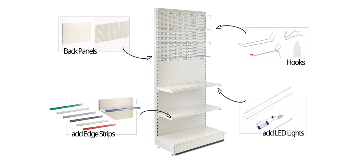 These stands include 3 of each of the Plain and Perforated Back Panels (H400 mm) but can additional back panels can be used (ordered separately), to swap out panels.