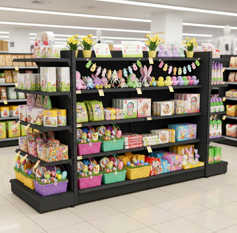 Keep the front of house prepped and focused during Easter. Retail Shelving is sturdy, and able to hold plenty of products, meaning less time spent in the stock room.