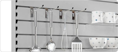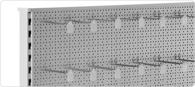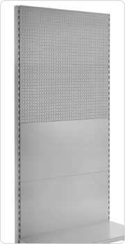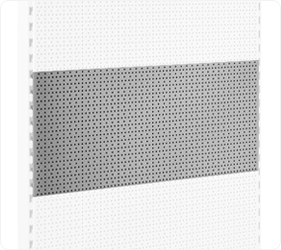 Perforated Panels and Slatwall panels come in different widths, and they increase the versatility of units, allowing for hanging displays.