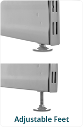 All Base Legs have adjustable feet, for ensuring a stable unit, even on uneven floors. The different depths allow you to decide how far you want the base of the unit to come out, while the uprights are the main factor for the height of the unit.