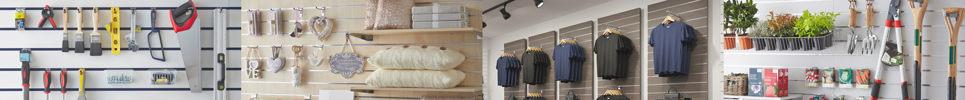 With a full range of matching hooks, brackets and shelves, it’s easy to build a customised system that’s practical, durable and visually appealing. Perfect for sports and leisure centres, retail, shops, showrooms and anywhere you need to make an impact with an organised and aesthetic display.