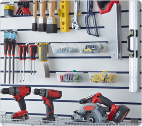 Transform slatwall panels into a versatile and flexible shelving and display system by adding various accessories.